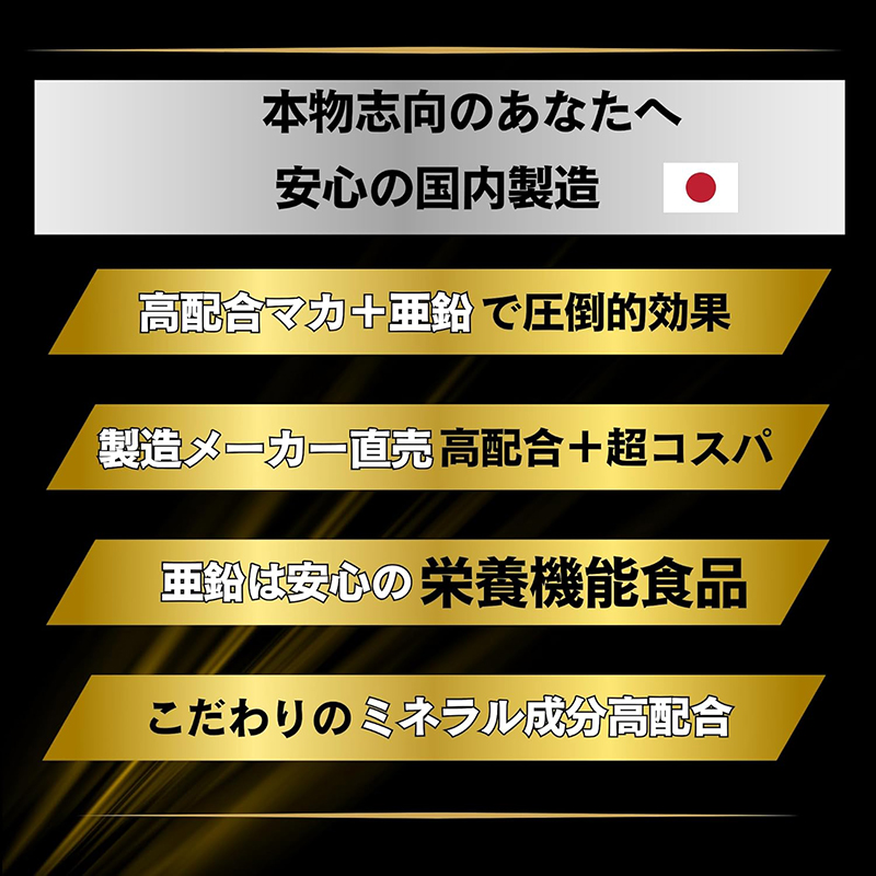 マカ、亜鉛酵母、田七人参、ビタミンB群を贅沢に配合しパワー成分に特化!